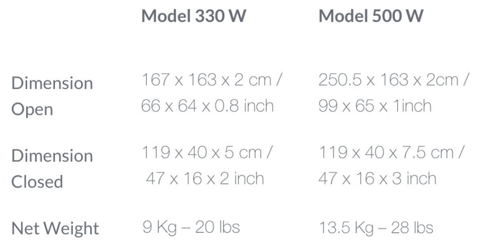 Dimension Open | 180 x 165 x 2 cm – 71 x 65 x 1 inch | 270 x 165 x 2 cm – 106 x 65 x 1 inch |